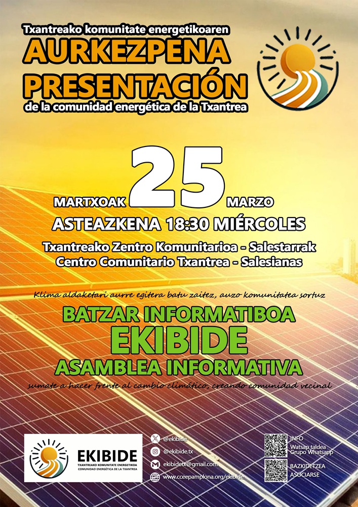 Ven a conocer qué hace EKIBIDE, la comunidad energética de la Txantrea, y cómo puedes participar.